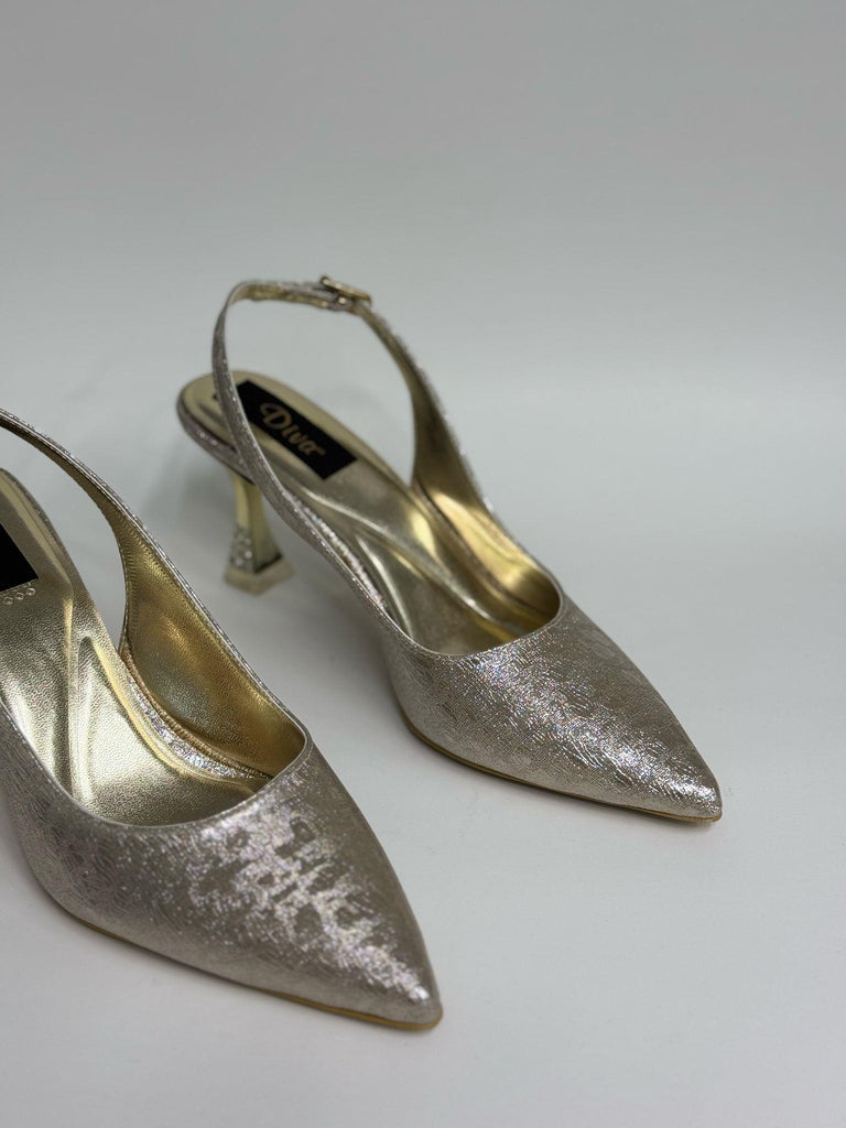 Altın Metalik Topuklu Kadın Ayakkabı