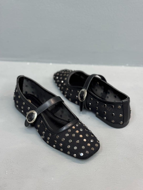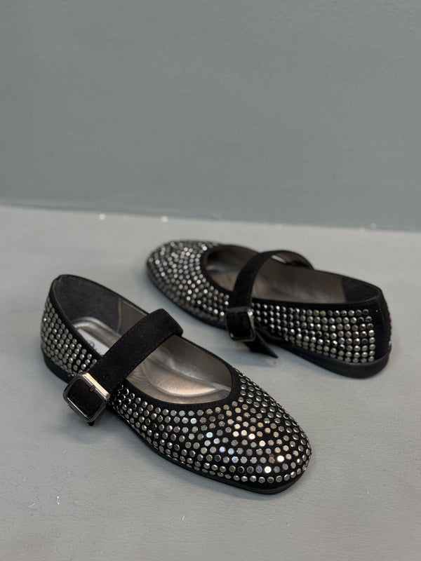 Diva Siyah Süet Deri Tokalı Kadın Günlük Babet