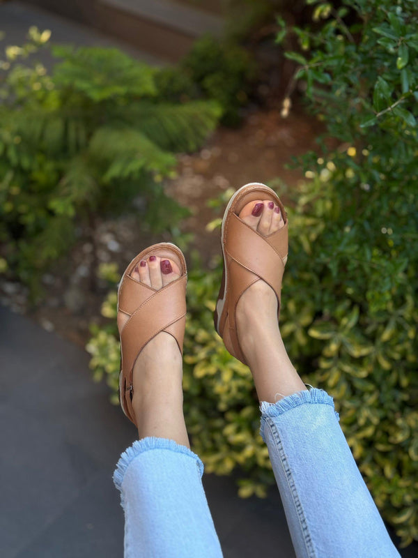 Taba Deri Ortopedik Kafesli Kadın Günlük Sandalet