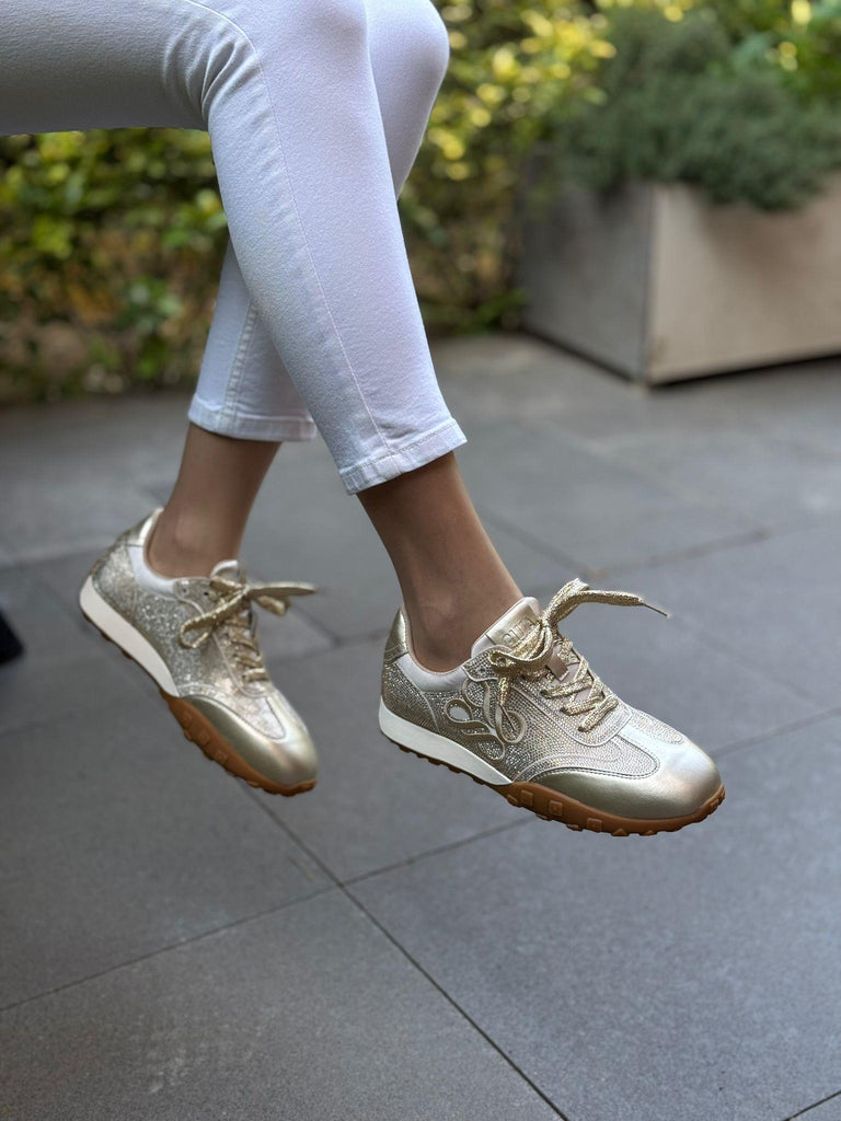 Altın Taşlı Bağcıklı Kadın Günlük Kadın Ayakkabı